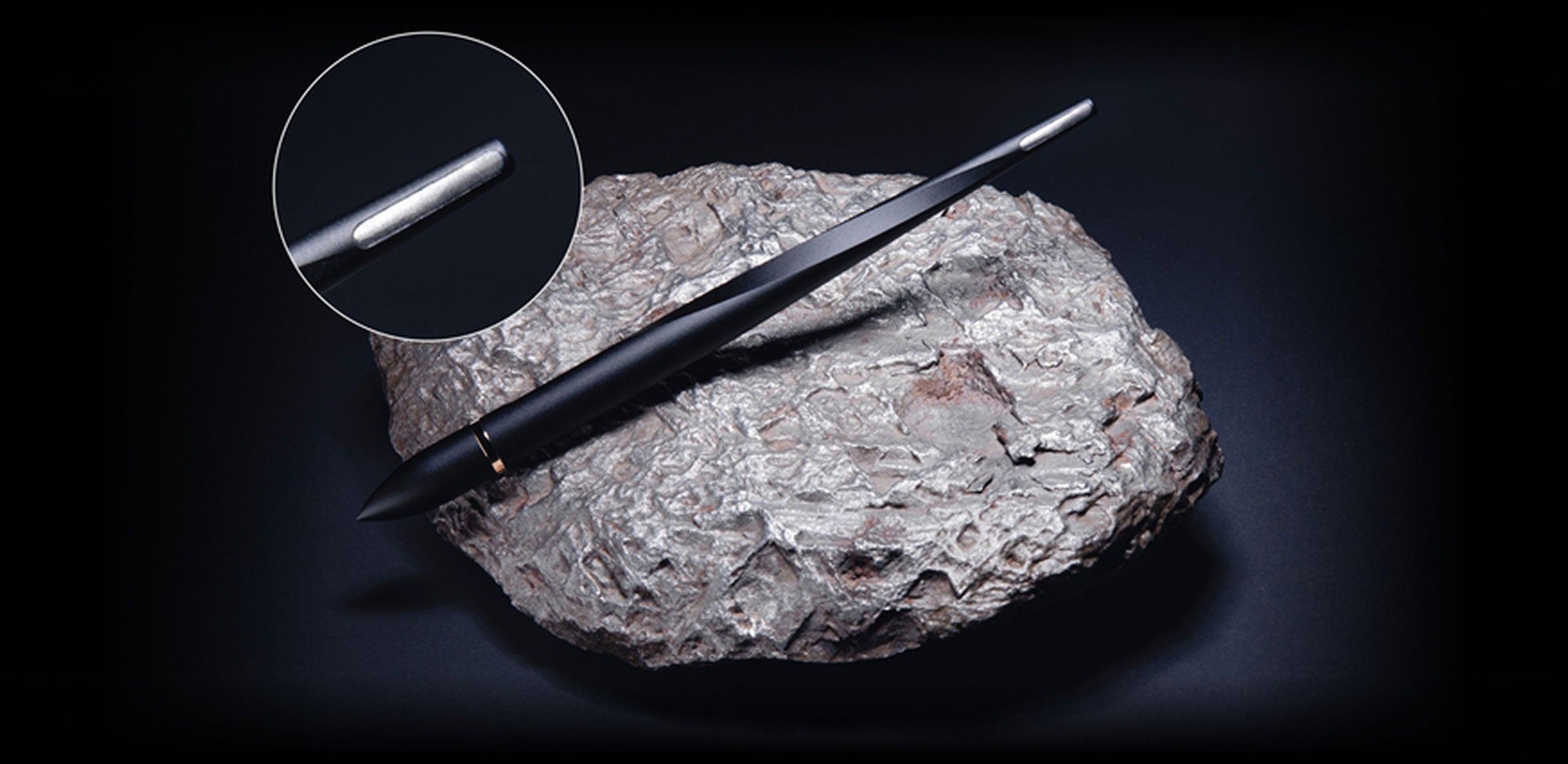 Il motivo Widmanstätten naturalmente presente, una struttura cristallina forgiata nello spazio nel corso di milioni di anni, rende ogni penna un vero pezzo unico nell’universo.