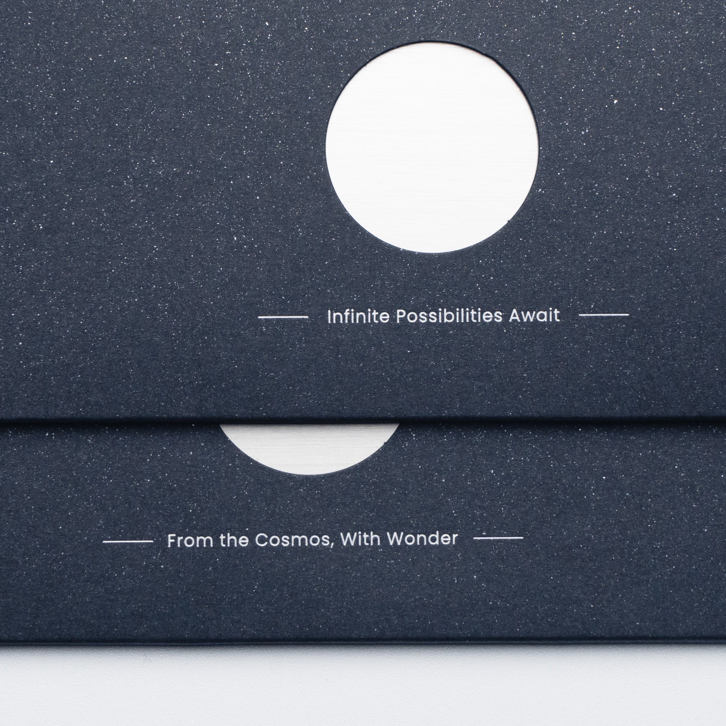 Ogni Cartoncino astrale presenta uno di due messaggi incantevoli. Puoi scegliere quello che ti emoziona di più: "Infinite possibilità ti attendono", una frase che ti ispira ad abbracciare le infinite opportunità future, o "Dal cosmo, con meraviglia", che celebra il mistero e la bellezza dell'universo.