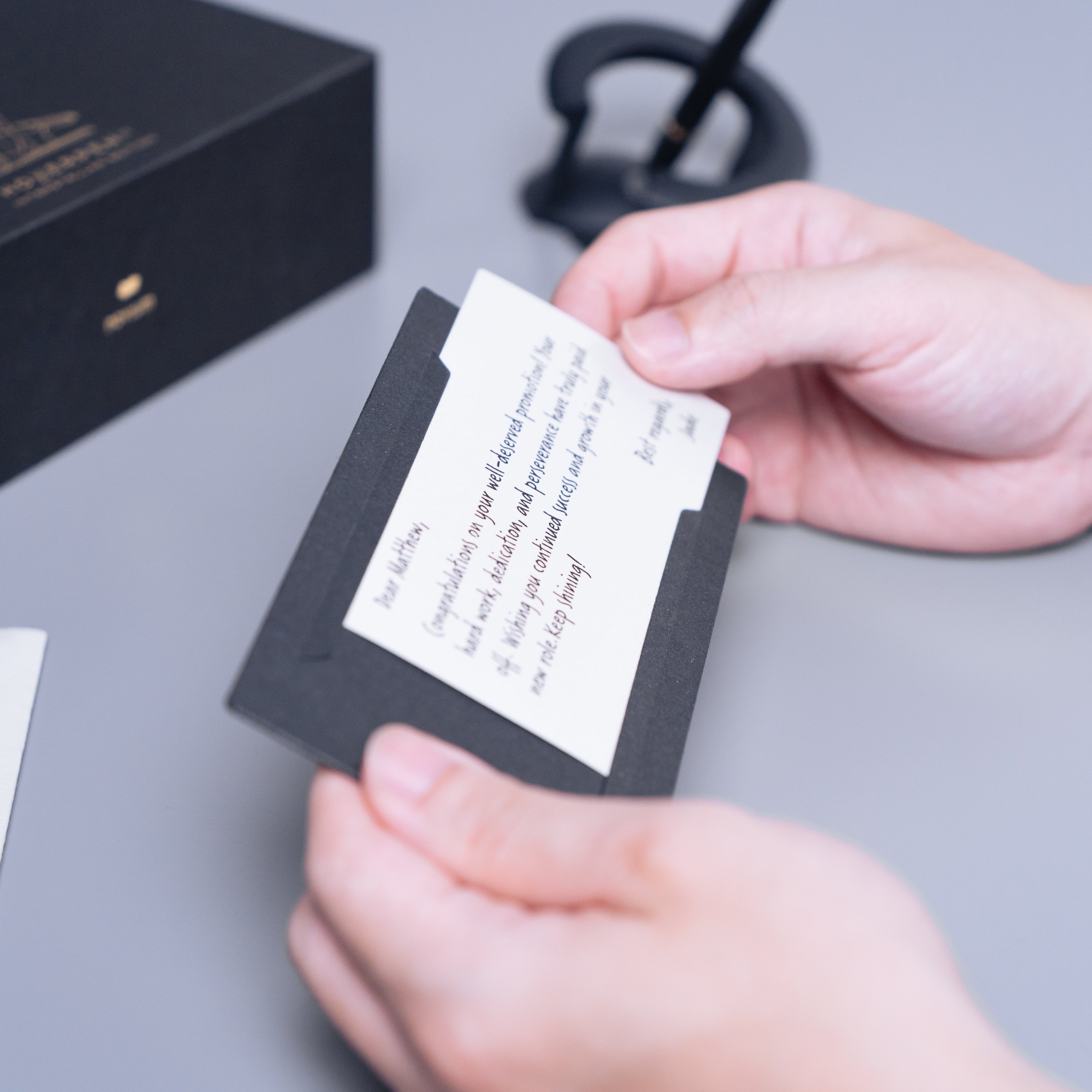 1. Scrivi il tuo messaggio personale sul foglio di carta premium incluso, ideale per penne stilografiche e a sfera.