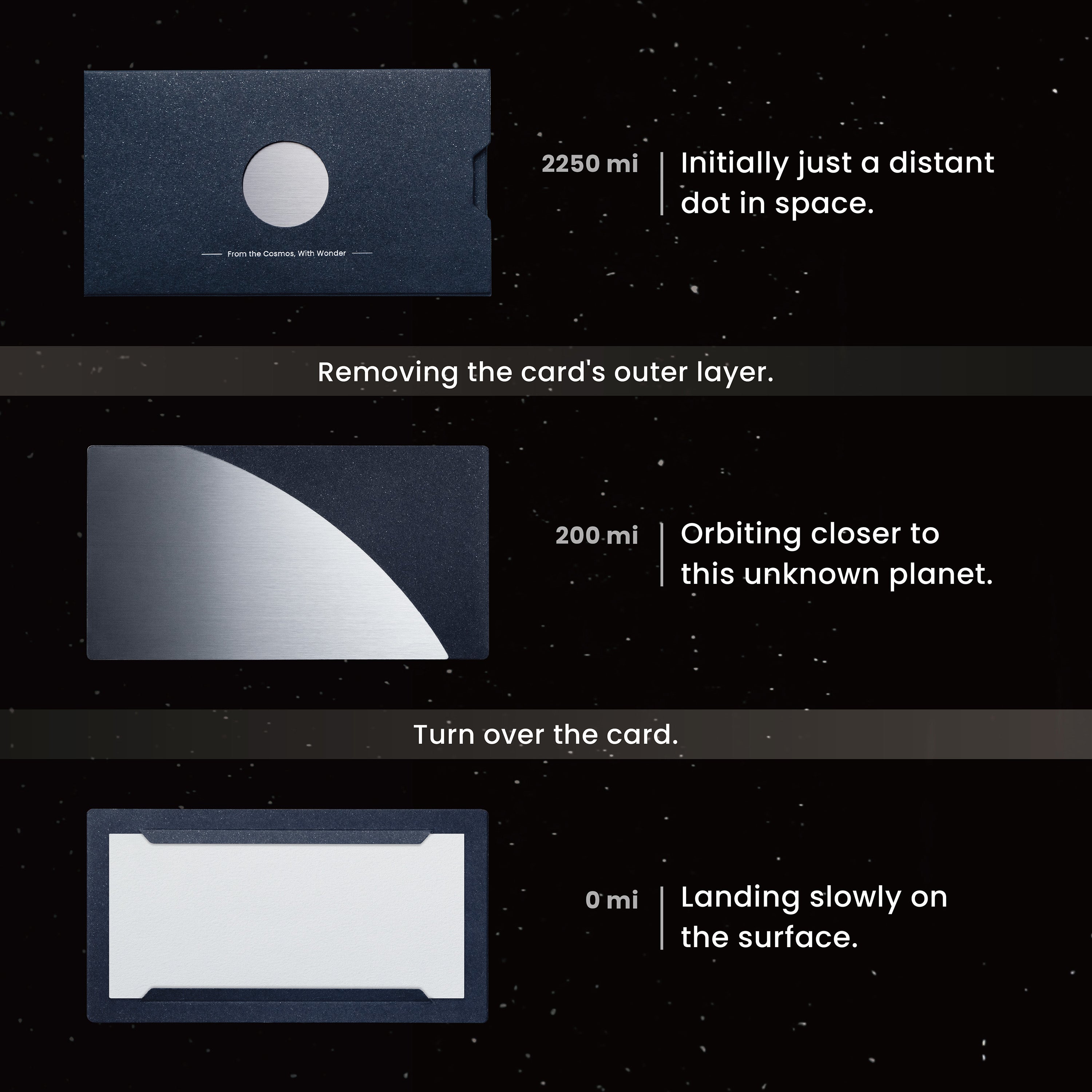 Scrivi il tuo pensiero sentito su carta di qualità, poi invialo in una custodia unica ispirata allo spazio.