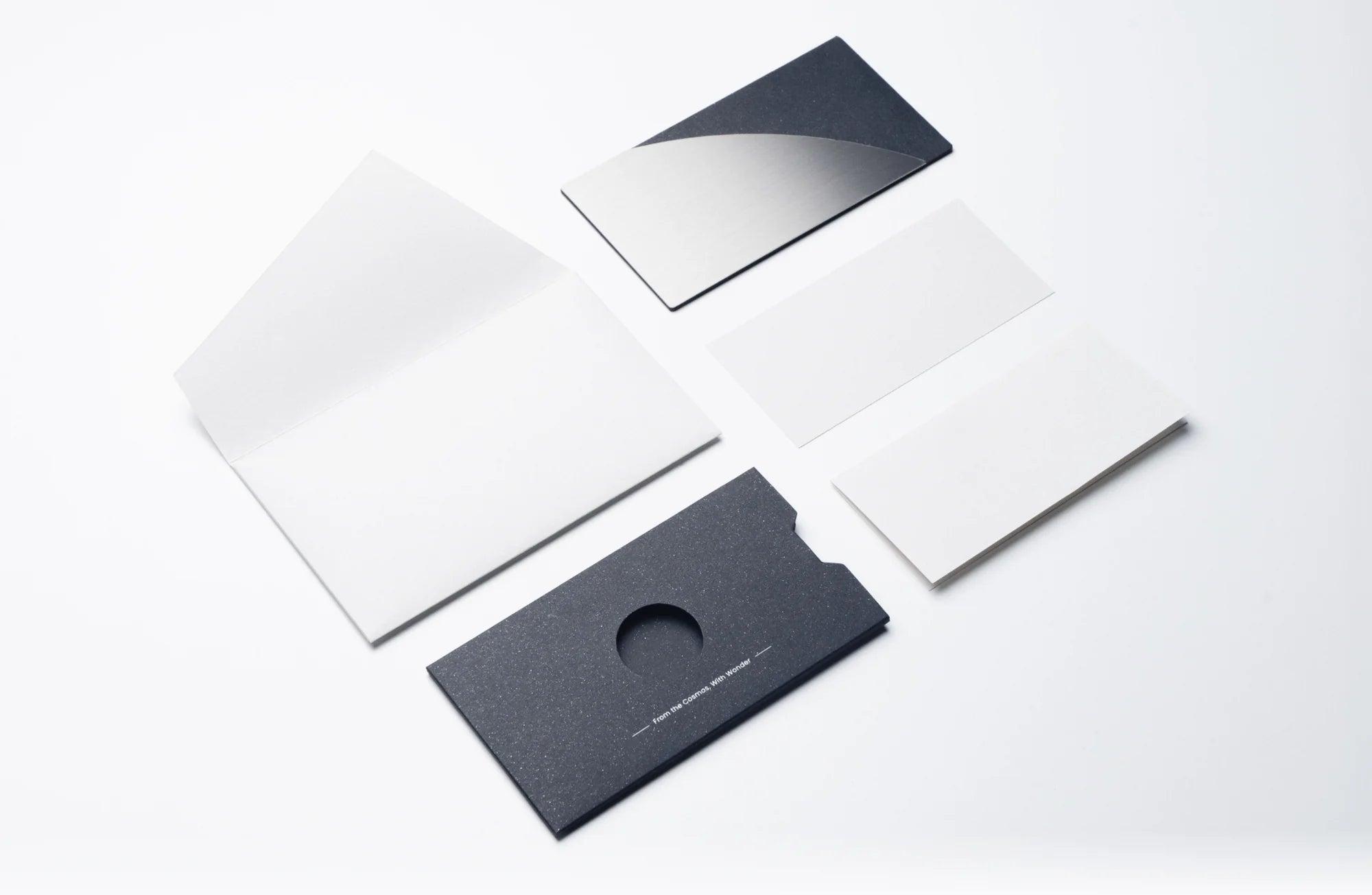 Il Cartoncino astrale in metallo non è solo un bigliettino, è un ricordo per i tuoi messaggi più significativi che durerà nel tempo. Realizzato in acciaio inossidabile durevole e accompagnato da lussuosa carta giapponese, ti offre un modo nuovo per condividere pensieri ed emozioni. Ogni cartoncino è contenuto in una custodia stellata e protetto in un'elegante busta, ideata per evocare il mistero e la bellezza del cosmo.
